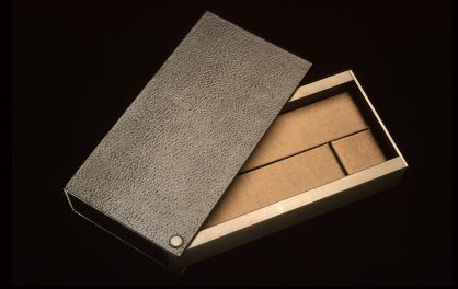 Jewellery case design for the exclusive range of Damiani’s products. Based on a jeweller’s loupe, these cases open and closed by pivoting from the corner and is made from a combination of anodised aluminium extrusions, silk wrapped vacuum forming and leather book binding. The materials reflect those used in Damiani shops designed by Antonio Citterio.