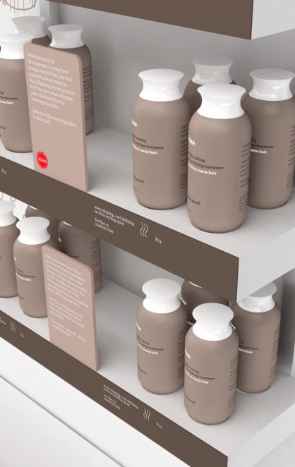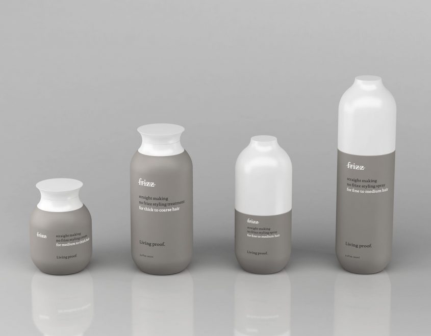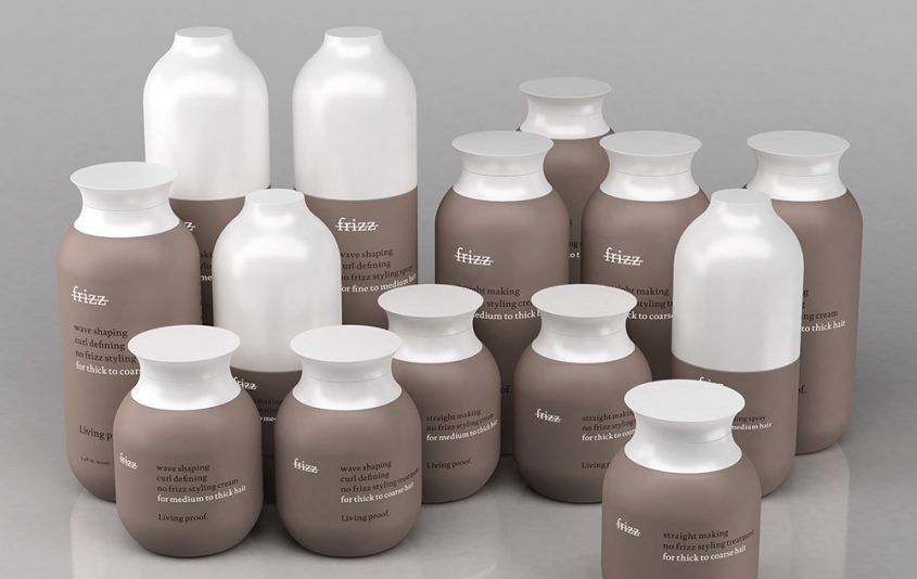 A range of hair products by Living Proof looks to establish a clear, identifiable image for the brand through form, colour and texture. The forms, colours and finishes bring together contrasting elements that physically express the idea of combination – two shapes coming together, two textures, two colours. Living Proof is the result of a collaboration between a chemical biologist and hairdresser.